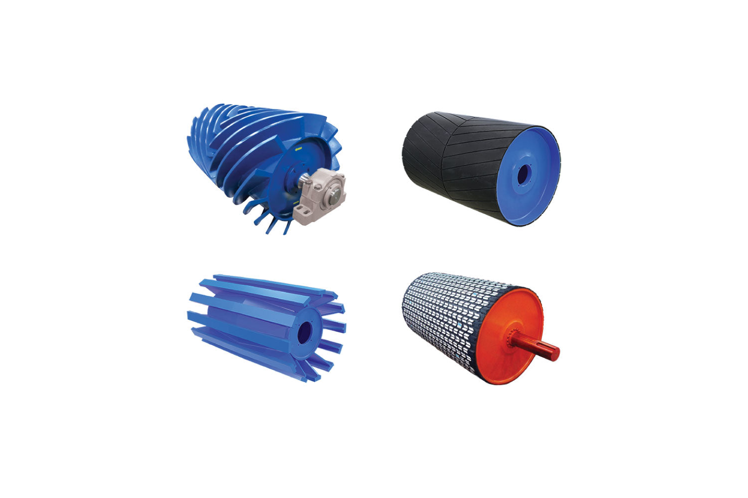 Poleas con o sin recubrimiento de caucho o caucho con insertos cerámicos, de cabeza, de cola, de doblez o autolimpiables, fabricadas bajo estrictos protocolos y control de calidad bajo estándares CEMA, para las aplicaciones más severas en las industrias mineras o cementera.